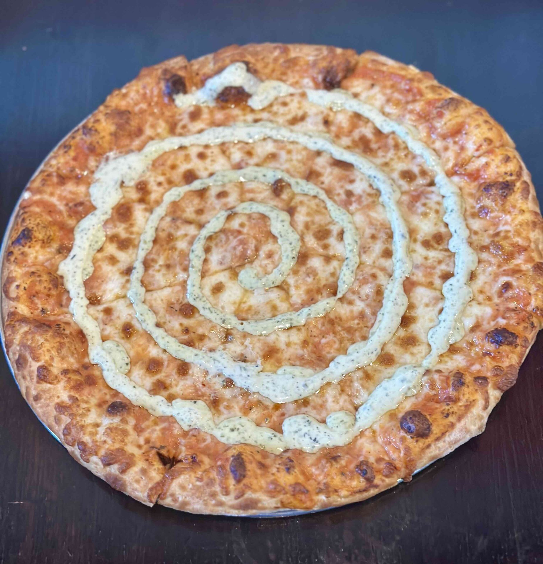 Creamy Vodka Sauce, Shredded Asiago and Mozzarella Cheeses, topped with a drizzle of our House Pesto Ranch dressing. Available in Hand Tossed, Thin Crust or Gluten-Free Cauliflower.
